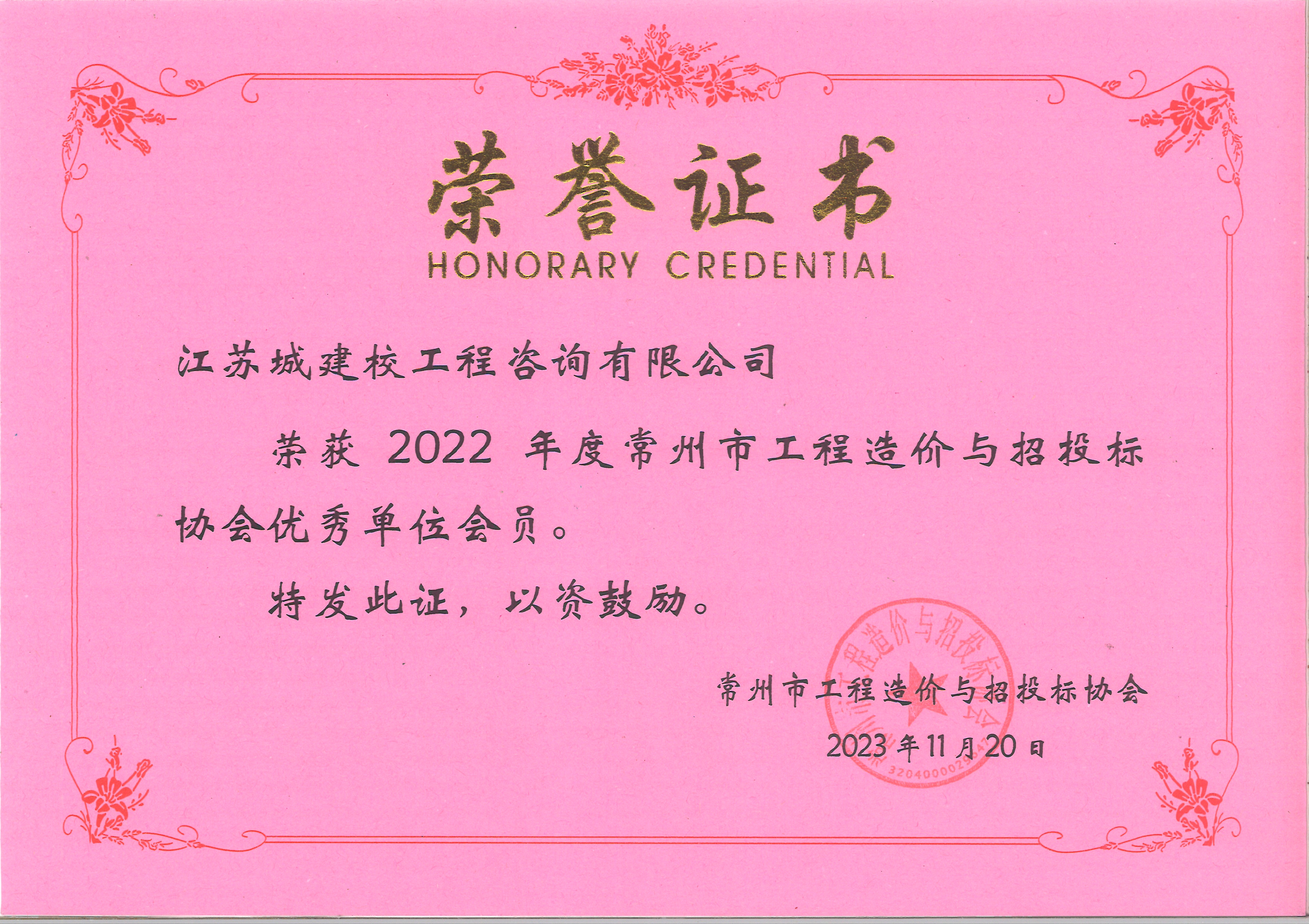 优秀会员单位-常州市价协2022年度