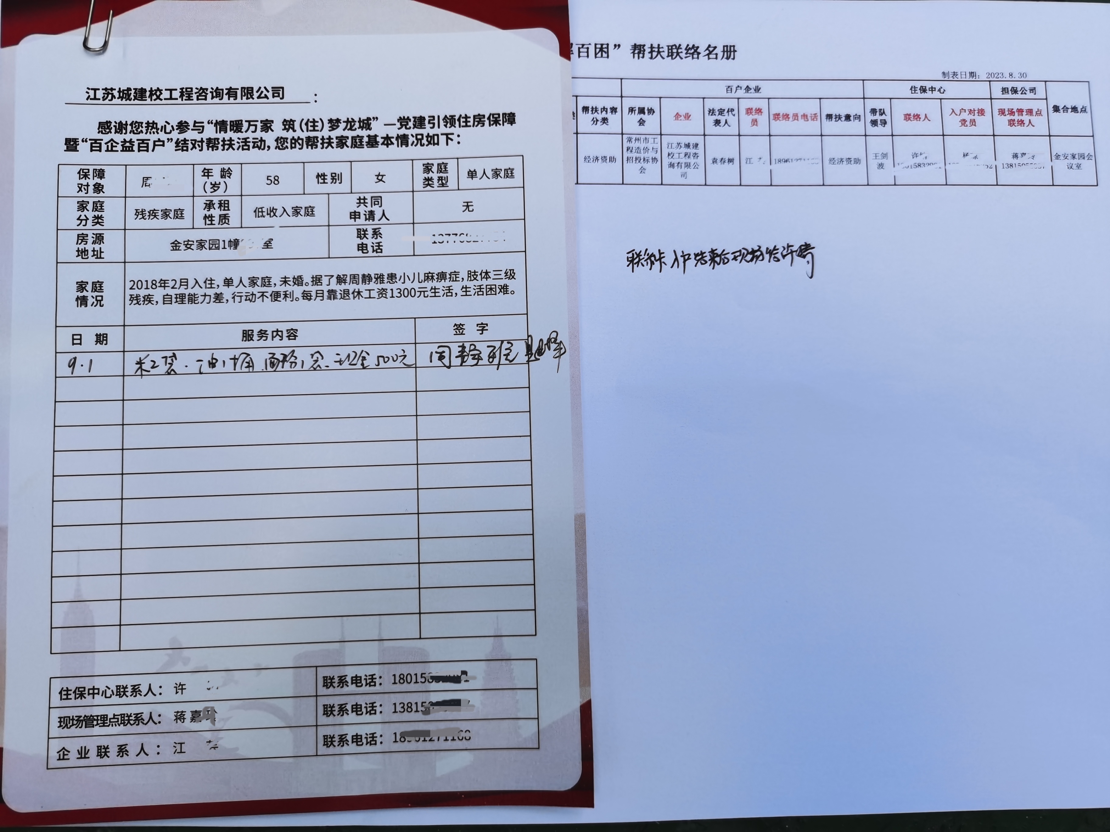 我公司积极参加“百企益百户”结对帮扶活动,捐助特殊困难家庭