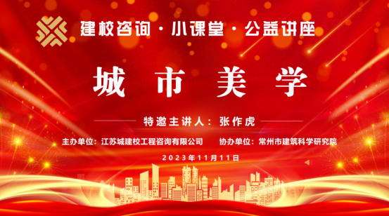 建校咨询小课堂第八期《城市美学》对外公益讲座,于11月11日下午在常州建筑科学研究院二楼工匠大厅成功举行。本次专题讲座特邀知名城市美学专家张作虎老师主讲,参加人员有市主管部门、平台公司领导,同业公司专家和技术人员,以及我公司的全体员工。